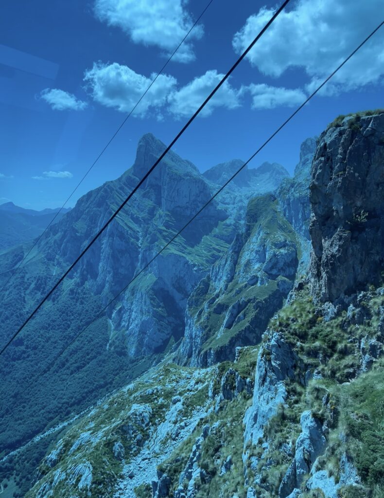 Desde allí visitamos el Monasterio de Santo Toribio de Liébana, un lugar cargado de historia que invita a caminar despacio y observar. Después pusimos rumbo a Fuente Dé, donde subimos en el teleférico. En apenas unos minutos pasas del valle a un paisaje imponente en pleno corazón de los Picos de Europa. Viento, silencio y esa sensación de pequeñez ante algo tan grande.
