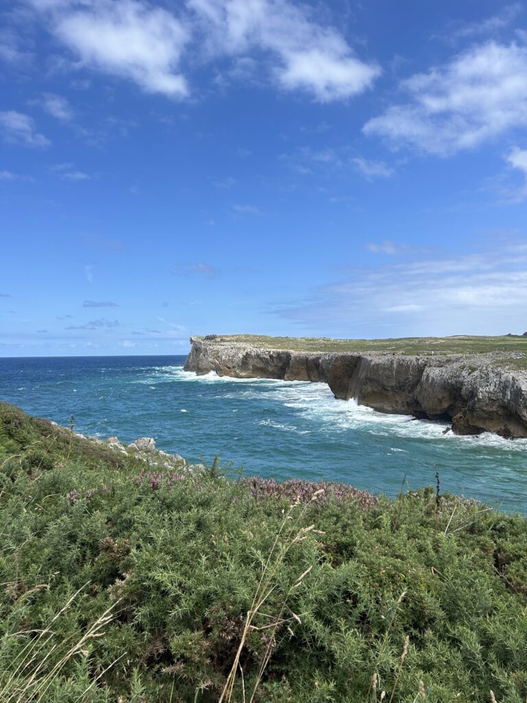 También visitamos el Monasterio de Covadonga, con su entorno natural impresionante y esa mezcla de espiritualidad e historia que lo convierte en un lugar emblemático. Y para cerrar la parte más salvaje del viaje, fuimos a los acantilados de Cuerres, donde el Cantábrico se muestra potente, intenso y completamente hipnótico.
