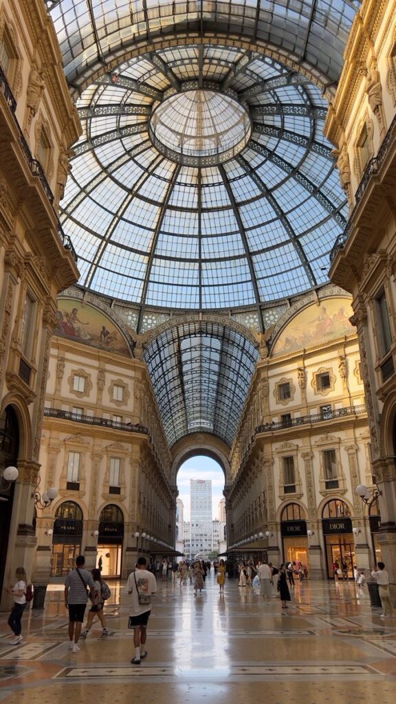 El plan empieza casi siempre en el Duomo, que es impresionante cuando lo ves en persona. La plaza tiene muchísima vida y subir a las terrazas es totalmente recomendable, porque las vistas de la ciudad desde arriba merecen la pena. Justo al lado está la Galleria Vittorio Emanuele II, con su arquitectura elegante y sus tiendas. Aunque no compres nada, pasear por allí ya es parte de la experiencia.